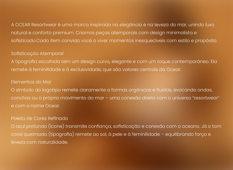 A OCEAR Resortwear é uma marca inspirada na elegância e na leveza do mar, unindo luxo natural e conforto premium.